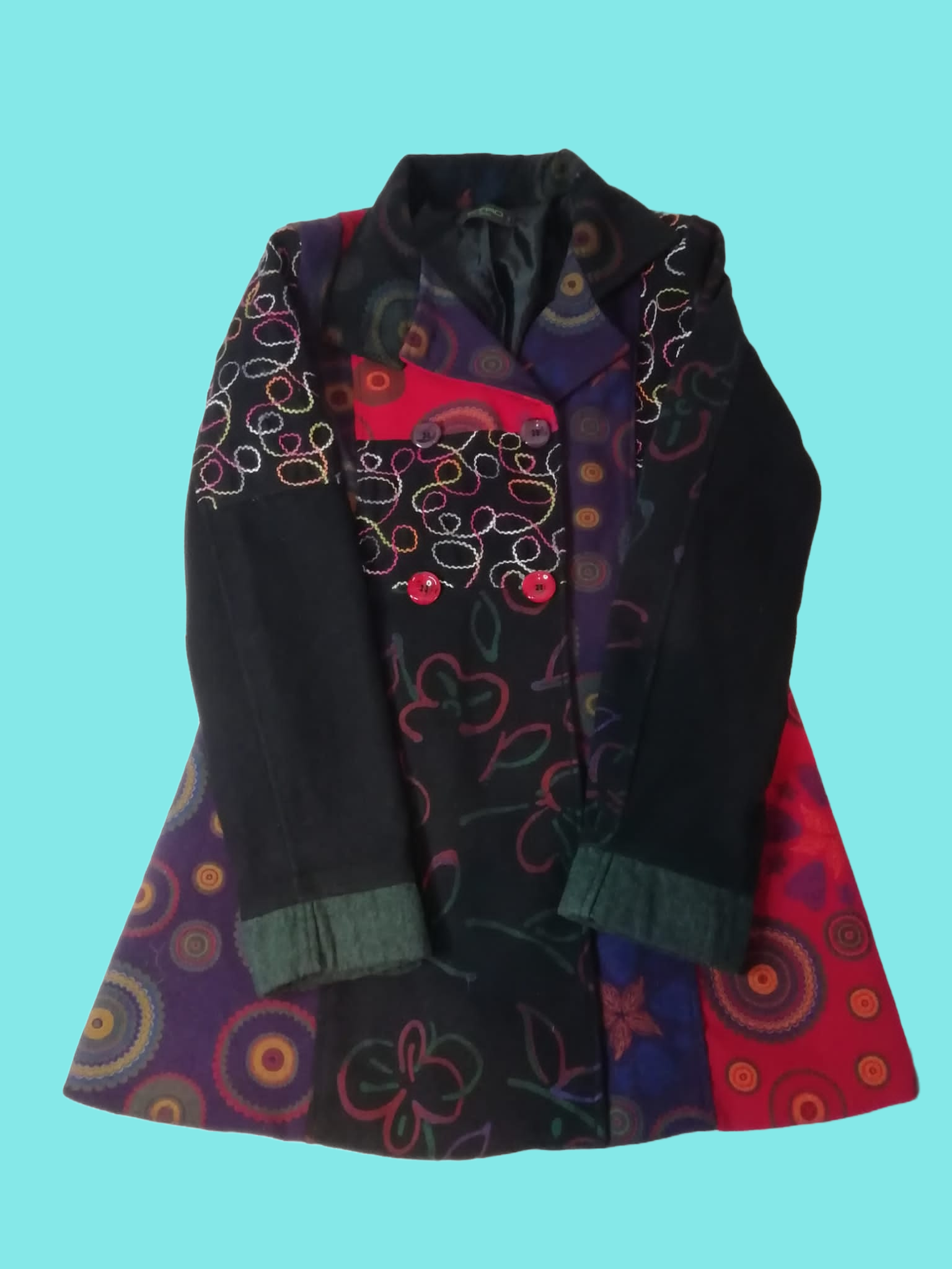 Cappotto Etro con mix and match di stampe tipico del brand in lana .