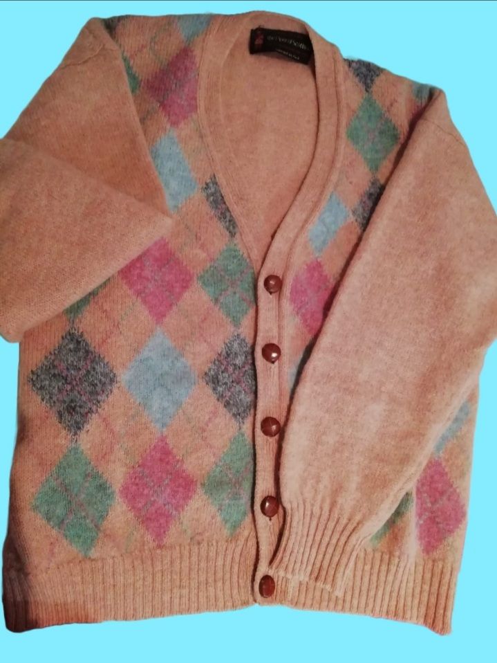 Cardigan in pura lana Shetland Scottish a rombi anni 70.